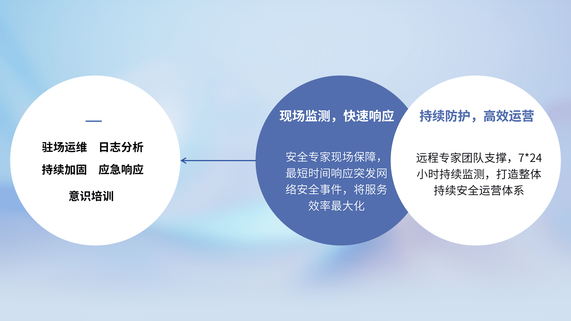 7X24小时持续监测安全事件,保持安全策略有效性,降低资产脆弱性风险,,精准拦截黑客攻击,,,,减少被黑客利用的机会,,第一时间遏制,,,降低损失。。。